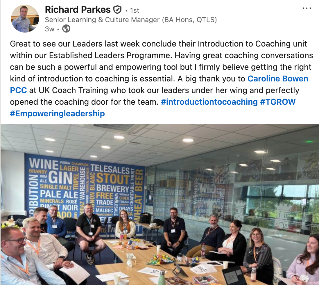 "I would recommend coaching training with Kaidi. I have gained a huge amount from just two days! It's given me more confidence to manage my team."